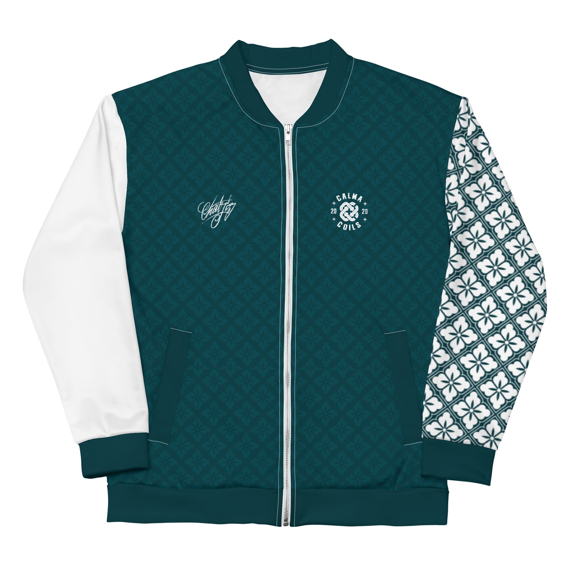 The Calma Coils tracksuit jacket is crafted specifically for you upon placing an order, leading to a slightly extended delivery time. By producing items on demand instead of in large quantities, we actively contribute to reducing overproduction. We appreciate your thoughtful purchasing decisions!